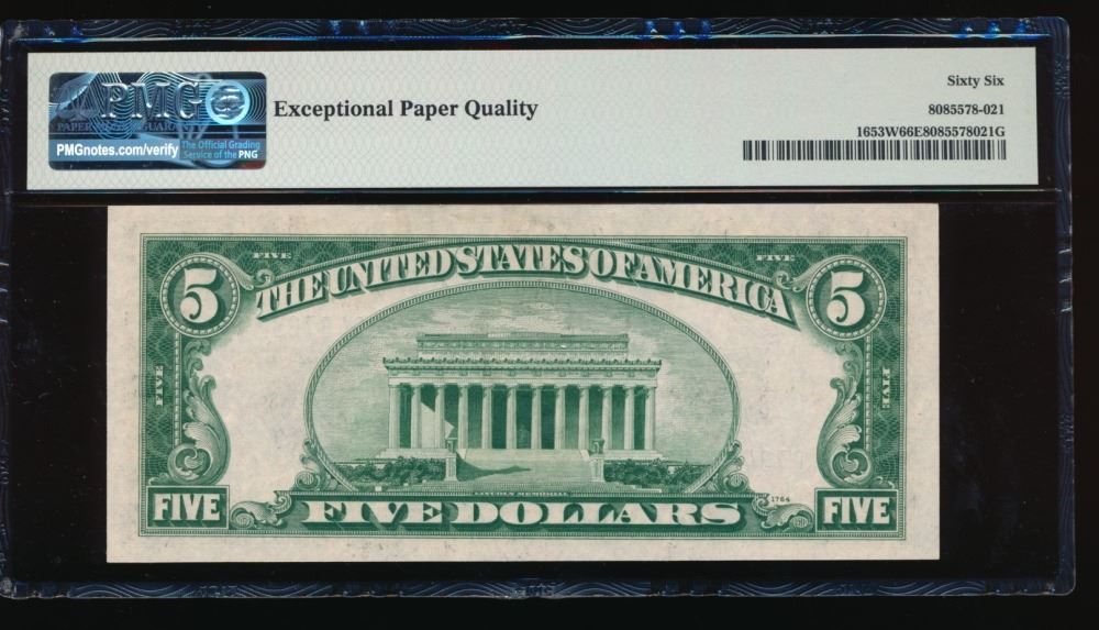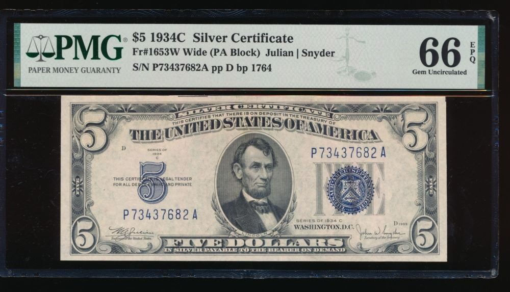 One 1934C $5 Silver Certificate PMG 66EPQ.