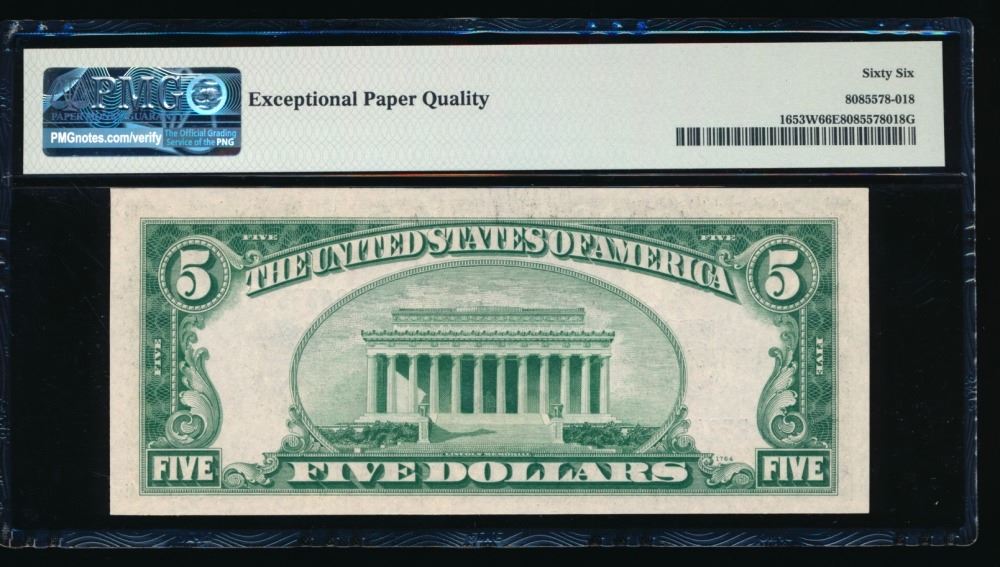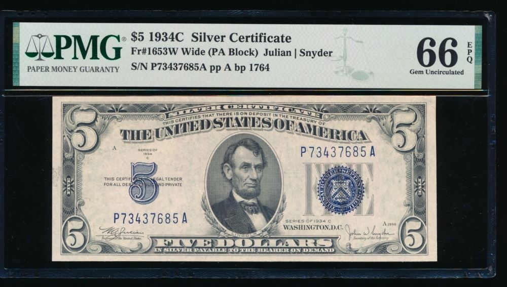 One 1934C $5 Silver Certificate PMG 66EPQ.
