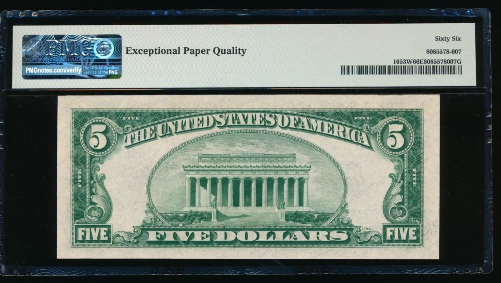 One 1934C $5 Silver Certificate PMG 66EPQ.