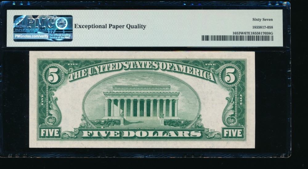 One 1934C $5 Silver Certificate PMG 67EPQ.