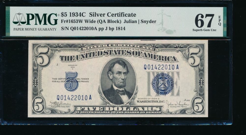 One 1934C $5 Silver Certificate PMG 67EPQ.