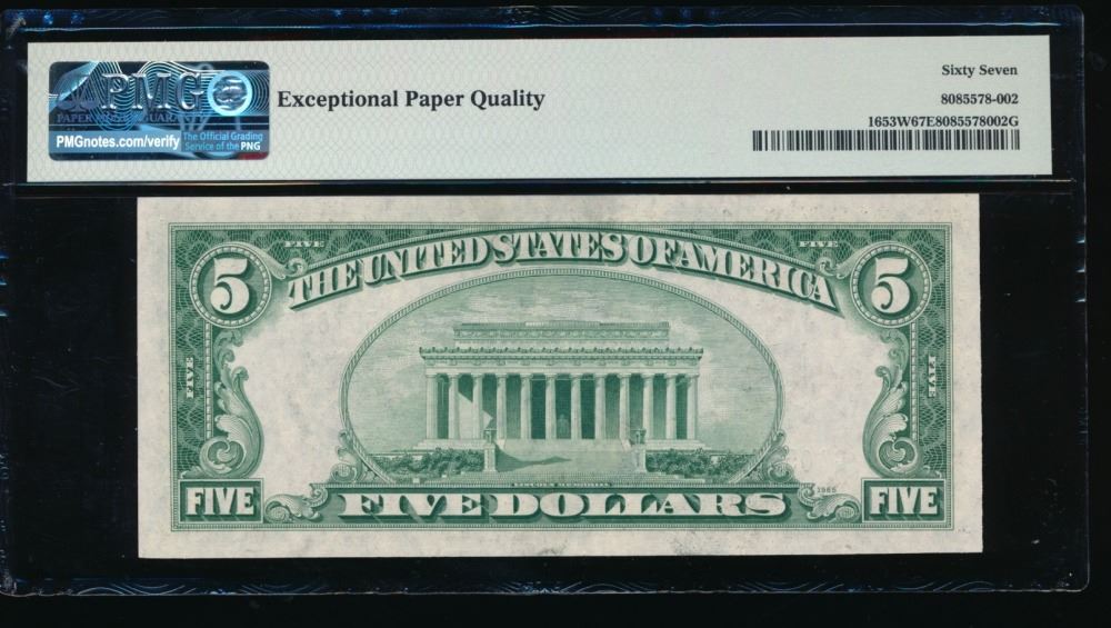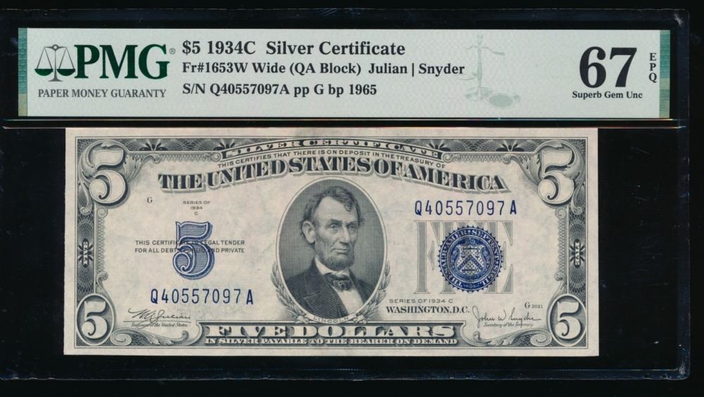 One 1934C $5 Silver Certificate PMG 67EPQ.