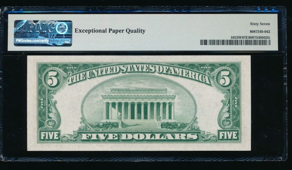 One 1934C $5 Silver Certificate PMG 67EPQ.