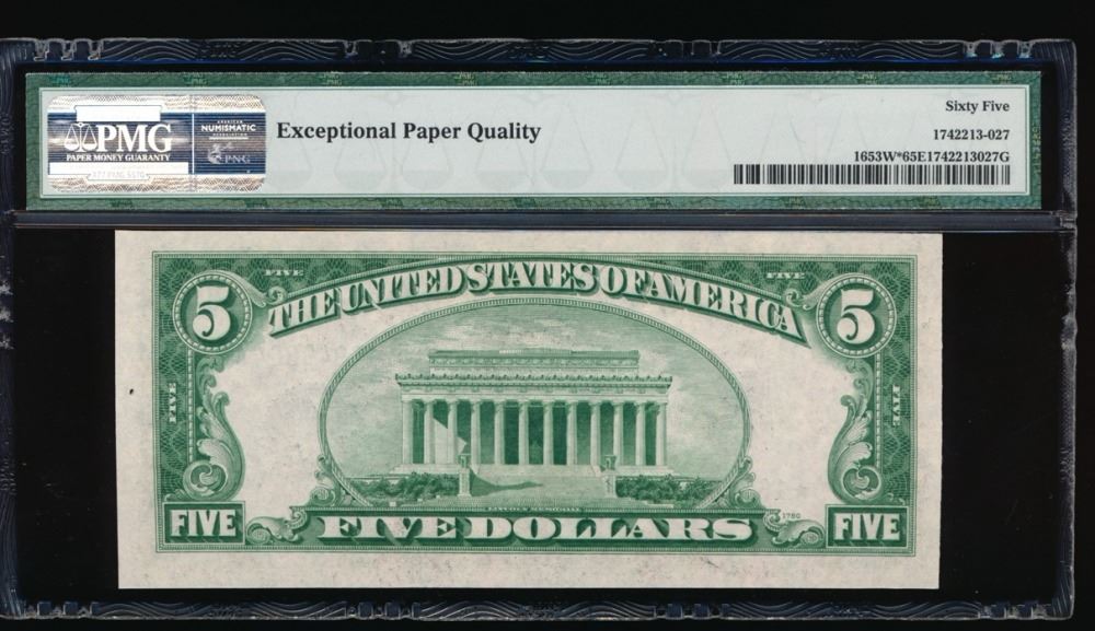 One 1934C $5 Silver Certificate Wide PMG 65EPQ.