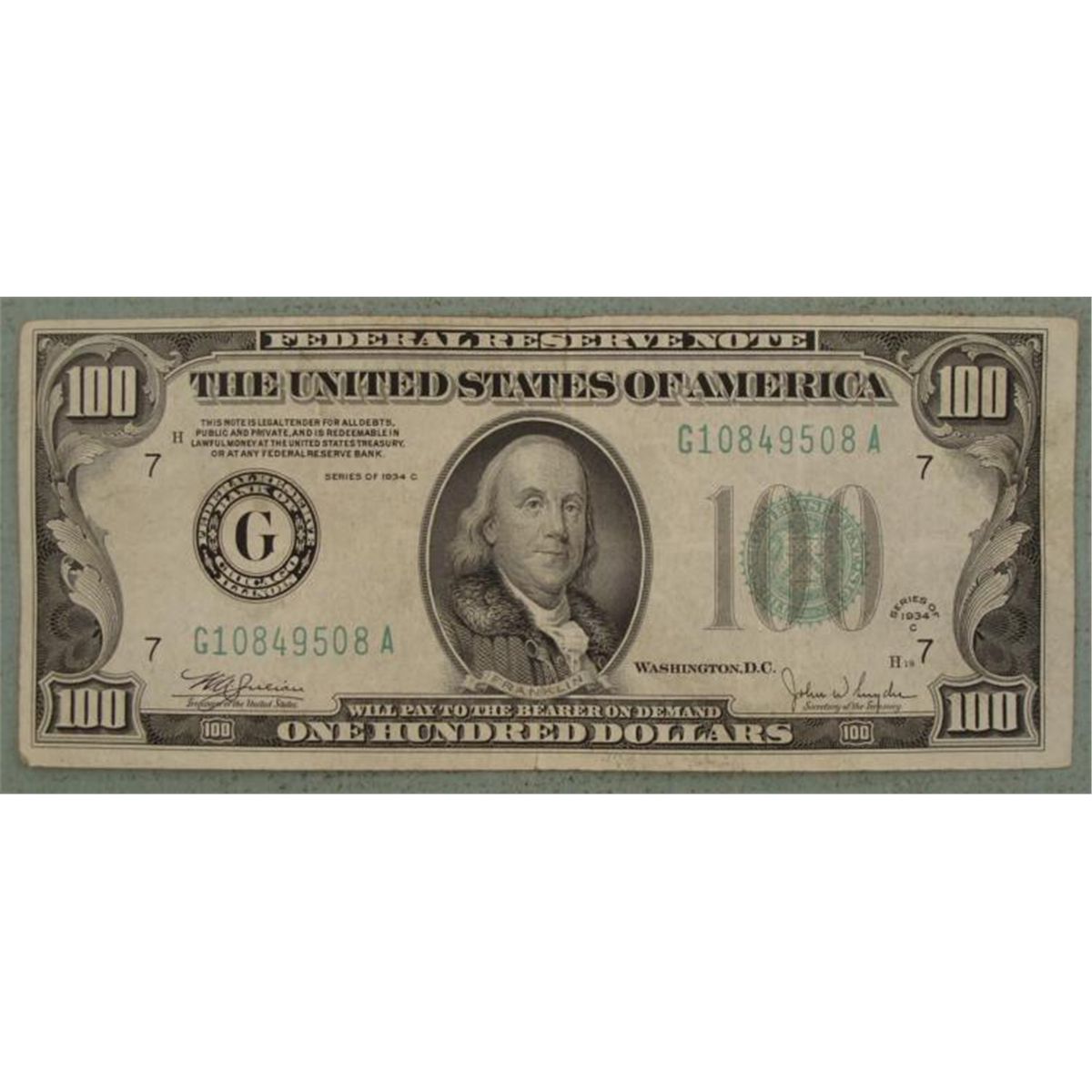 1934C H19 Federal Reserve Note * Mint mark: G (Chicago) Details: Large G & 100 Condition: Very Nice