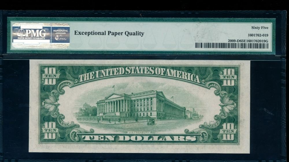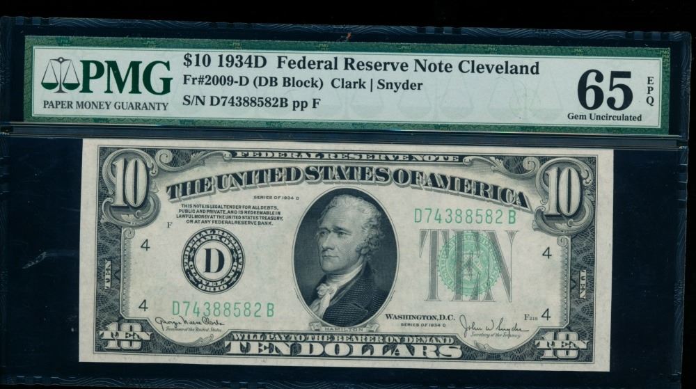 One 1934D $10 Cleveland FRN PMG 65EPQ.