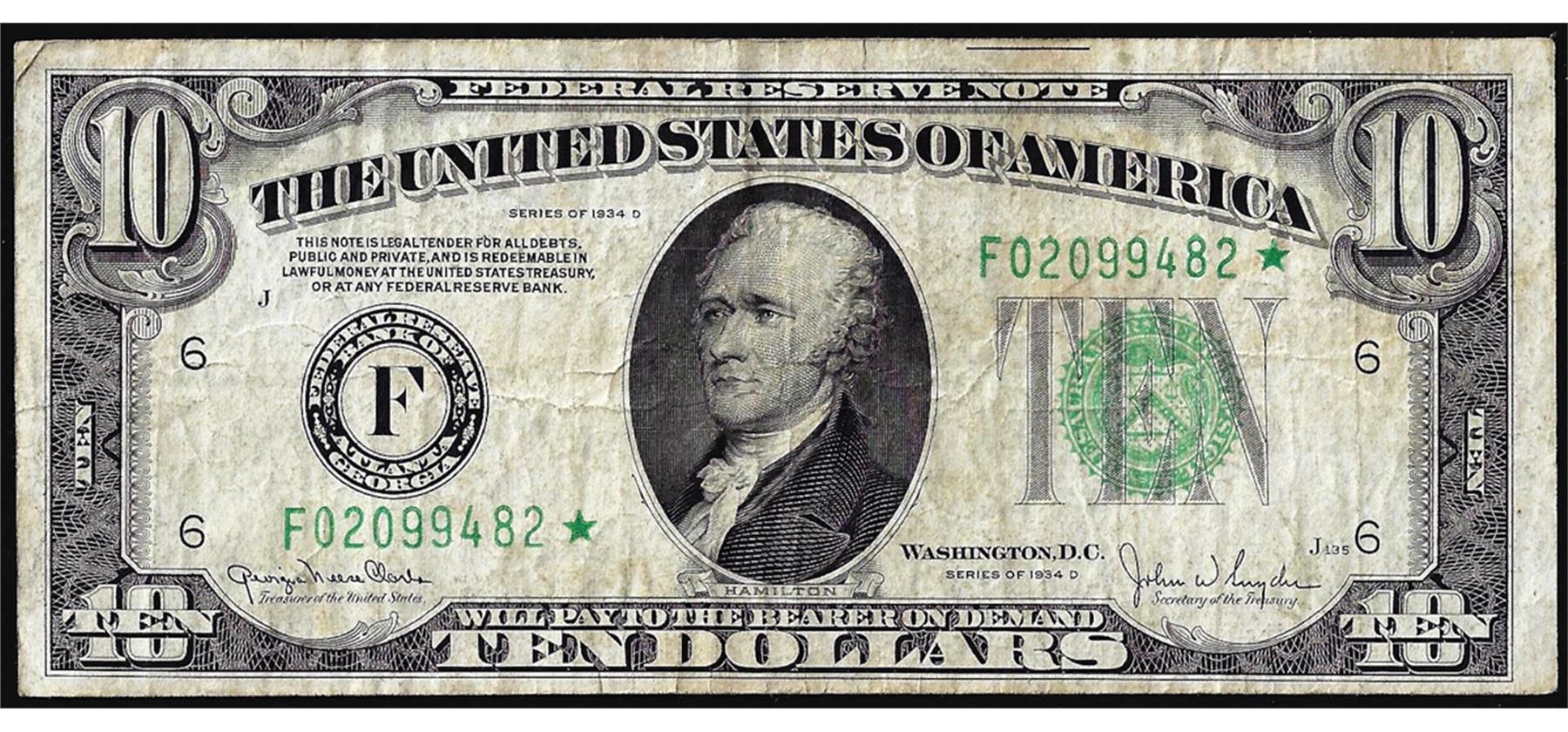 One 1934D $10 Federal Reserve STAR Note.