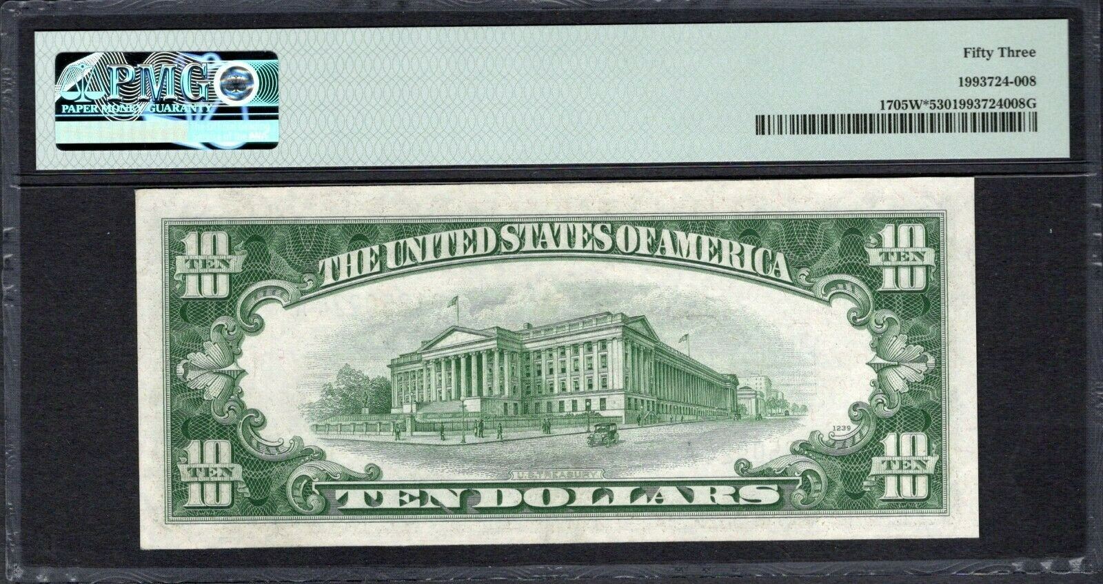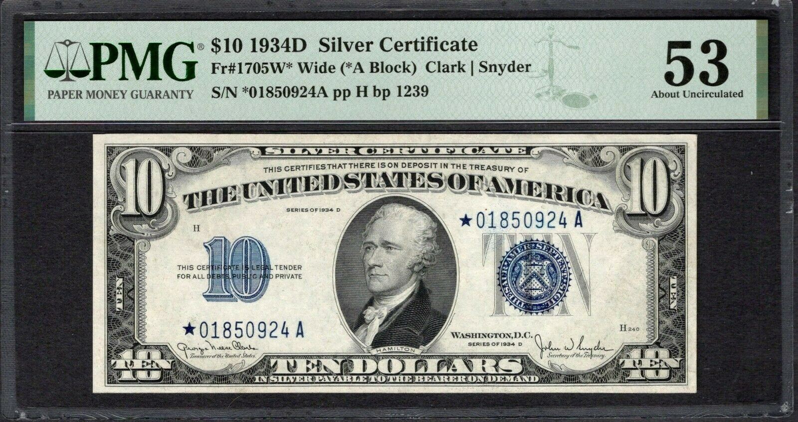 One 1934D $10 STAR Silver Certificate PMG 53.