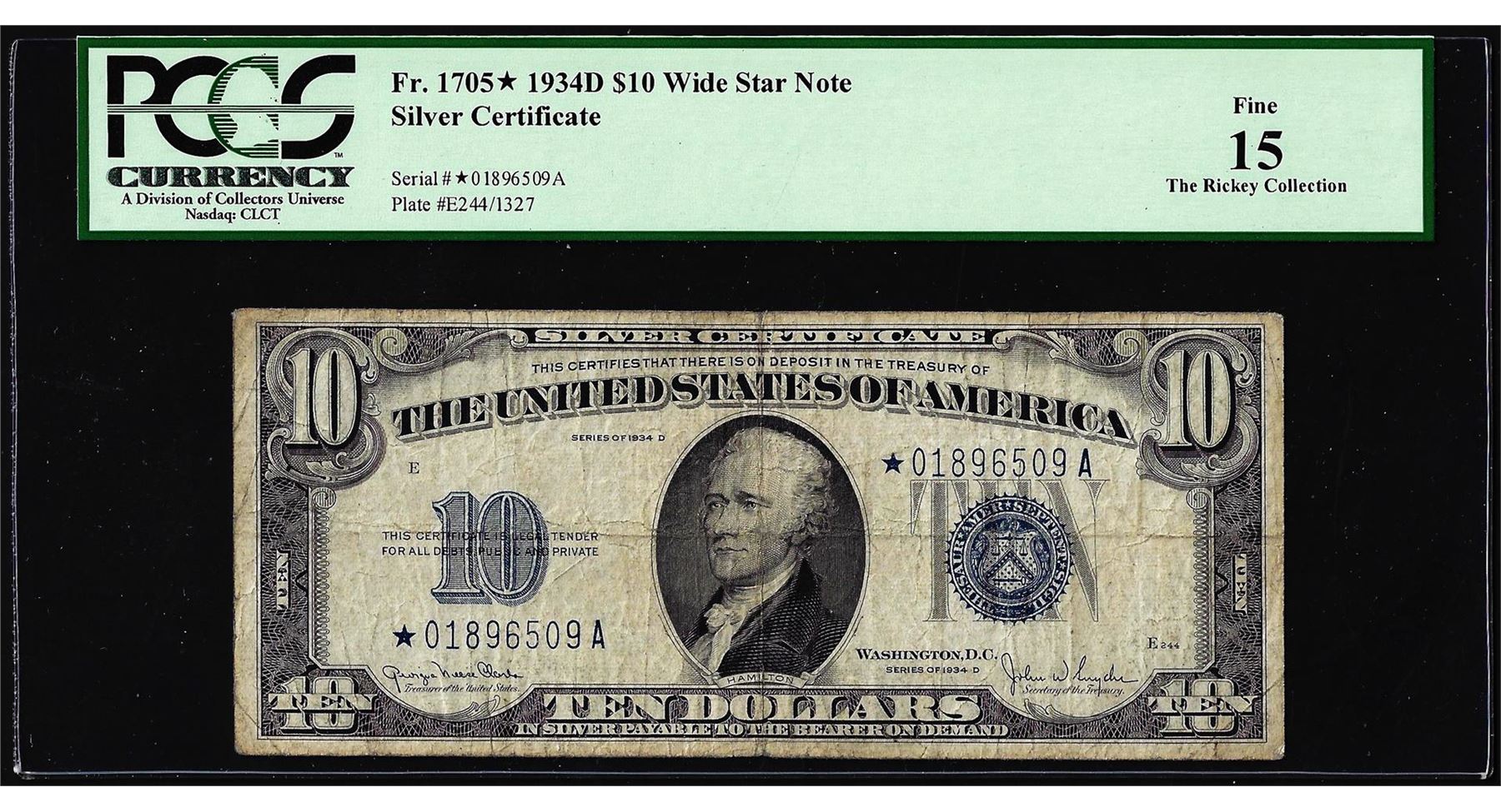 One 1934D $10 Silver Certificate STAR Note Fr.1705* PCGS Fine 15. PCGS Graded.