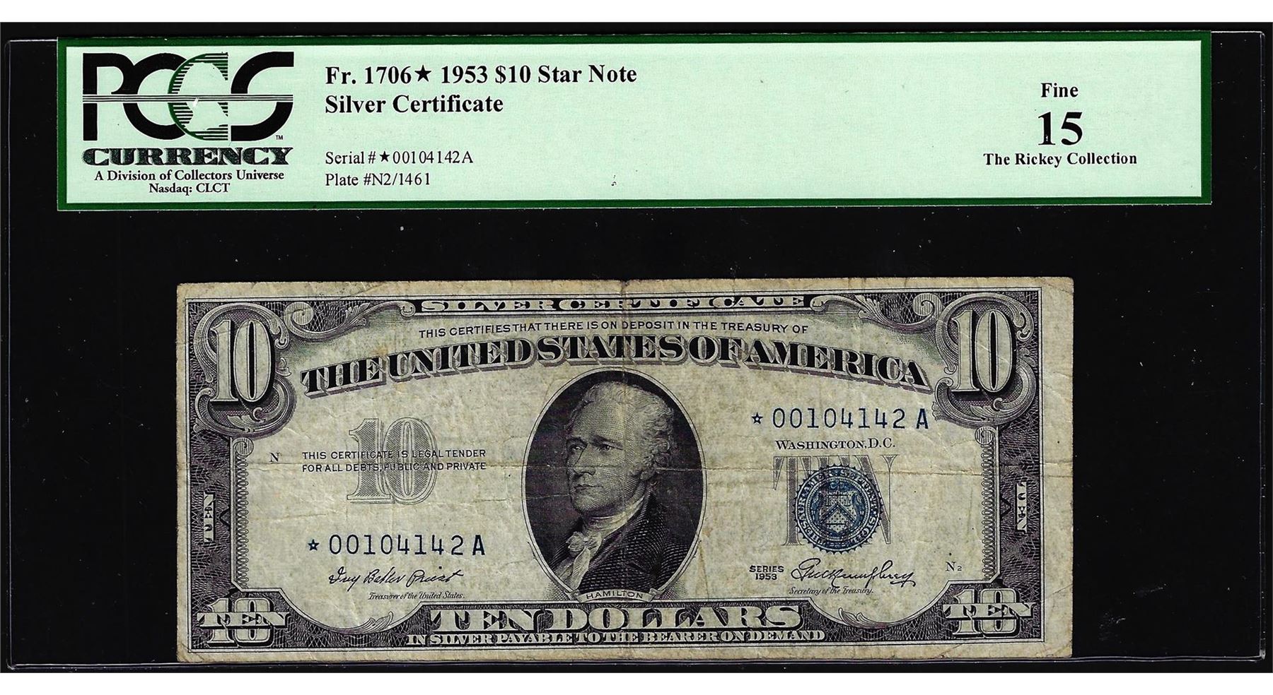 One 1934D $10 Silver Certificate STAR Note Fr.1706* PCGS Fine 15. PCGS Graded.