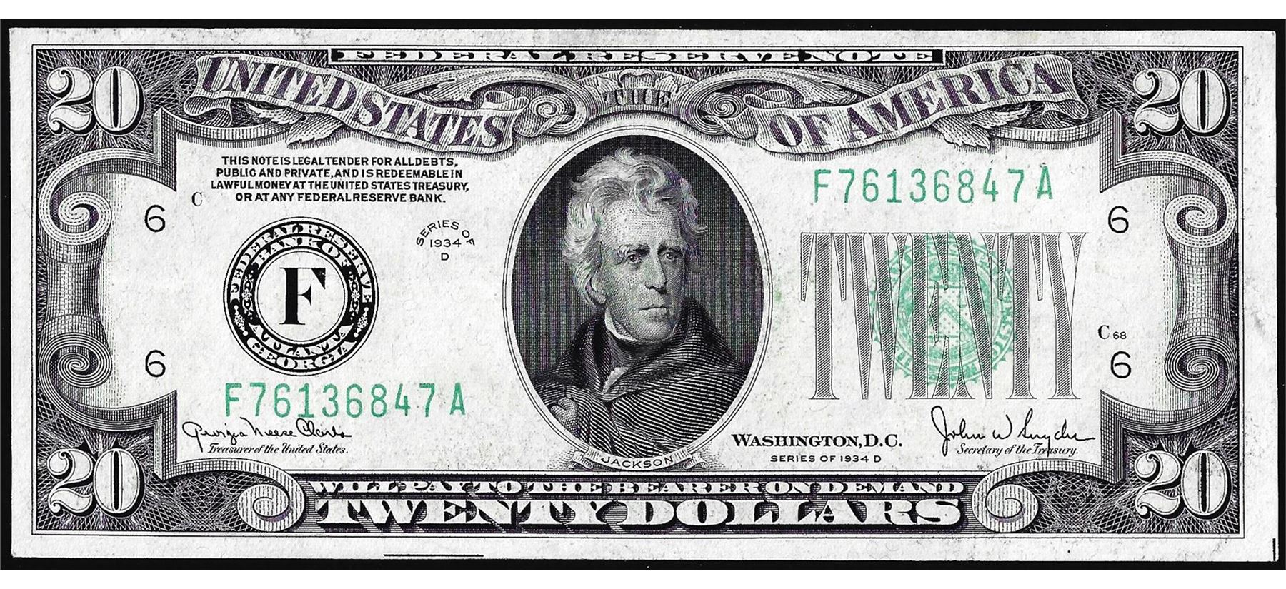 One 1934D $20 Federal Reserve Note Atlanta.