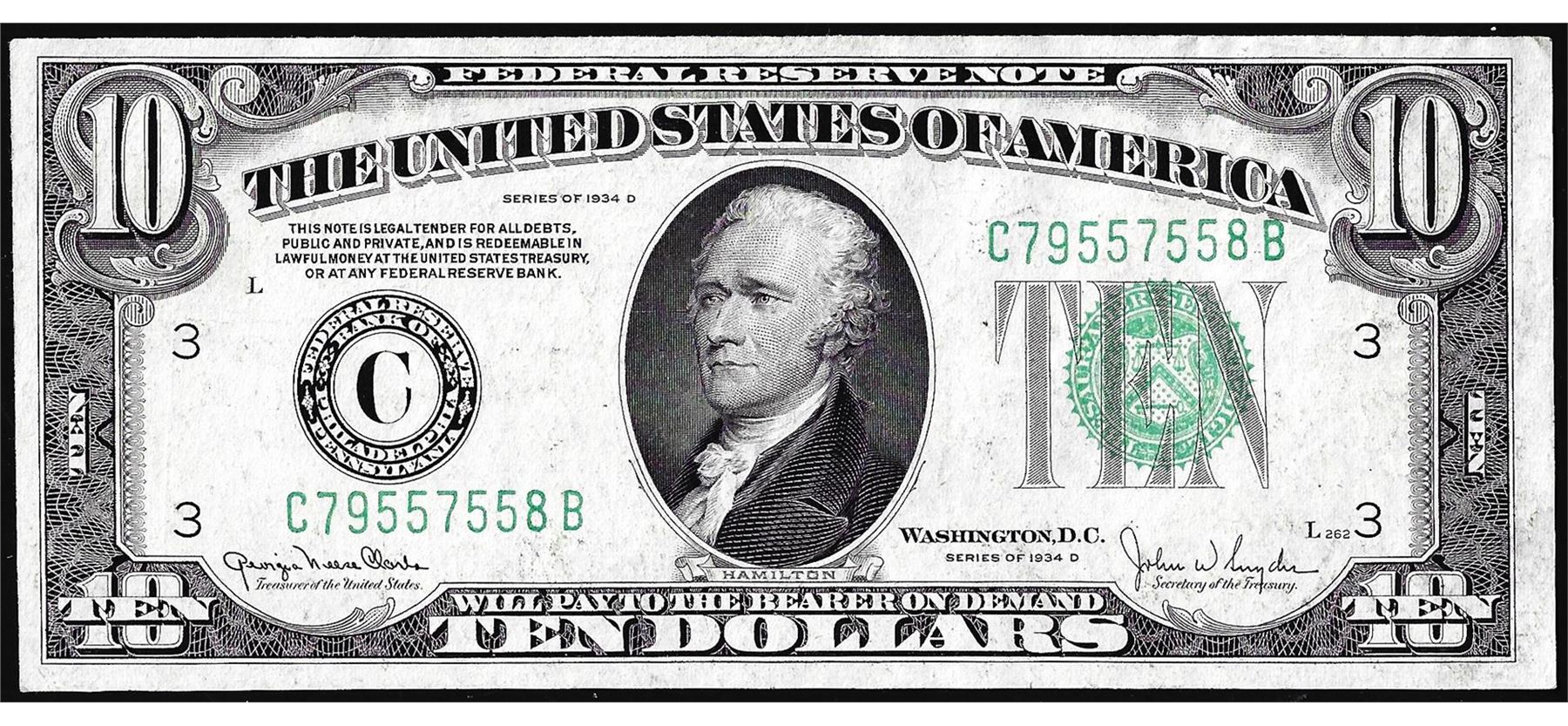 One 1934D $20 Federal Reserve Note Philadelphia.
