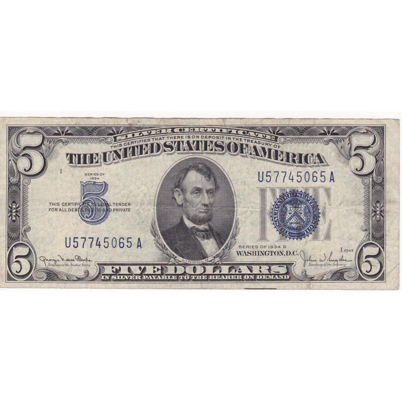 1934D $5 SIlver Certificate, F-VF **|**|** 1934D $5 SIlver Certificate, F-VF ; MSRP: $0