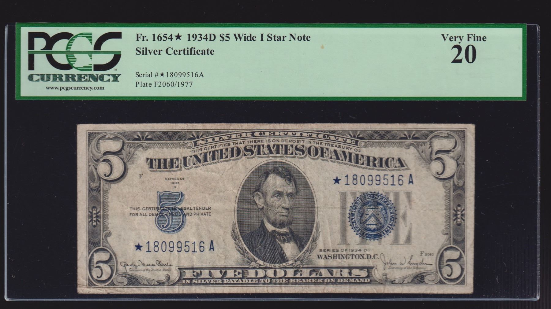 One 1934D $5 STAR Silver Certificate PCGS 20.