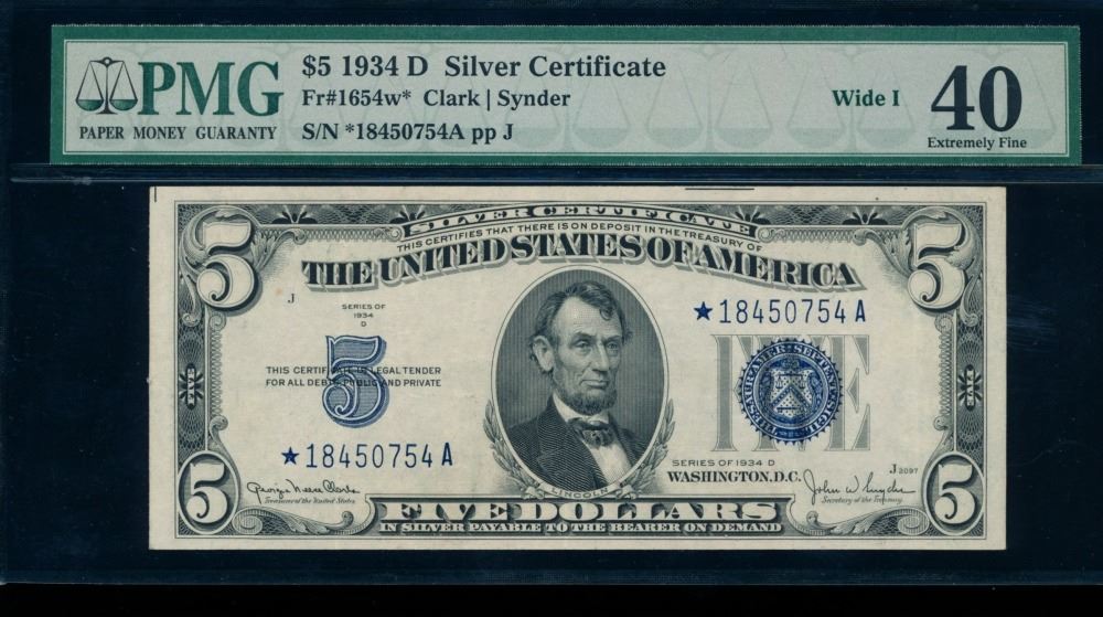 One 1934D $5 STAR Silver Certificate PMG 40.
