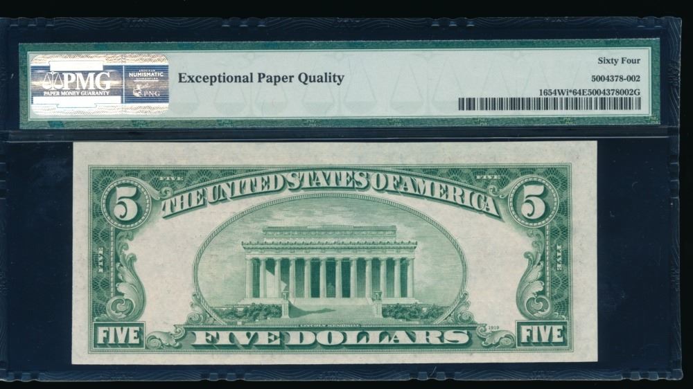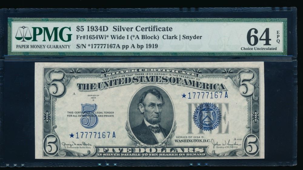 One 1934D $5 STAR Silver Certificate PMG 64EPQ.