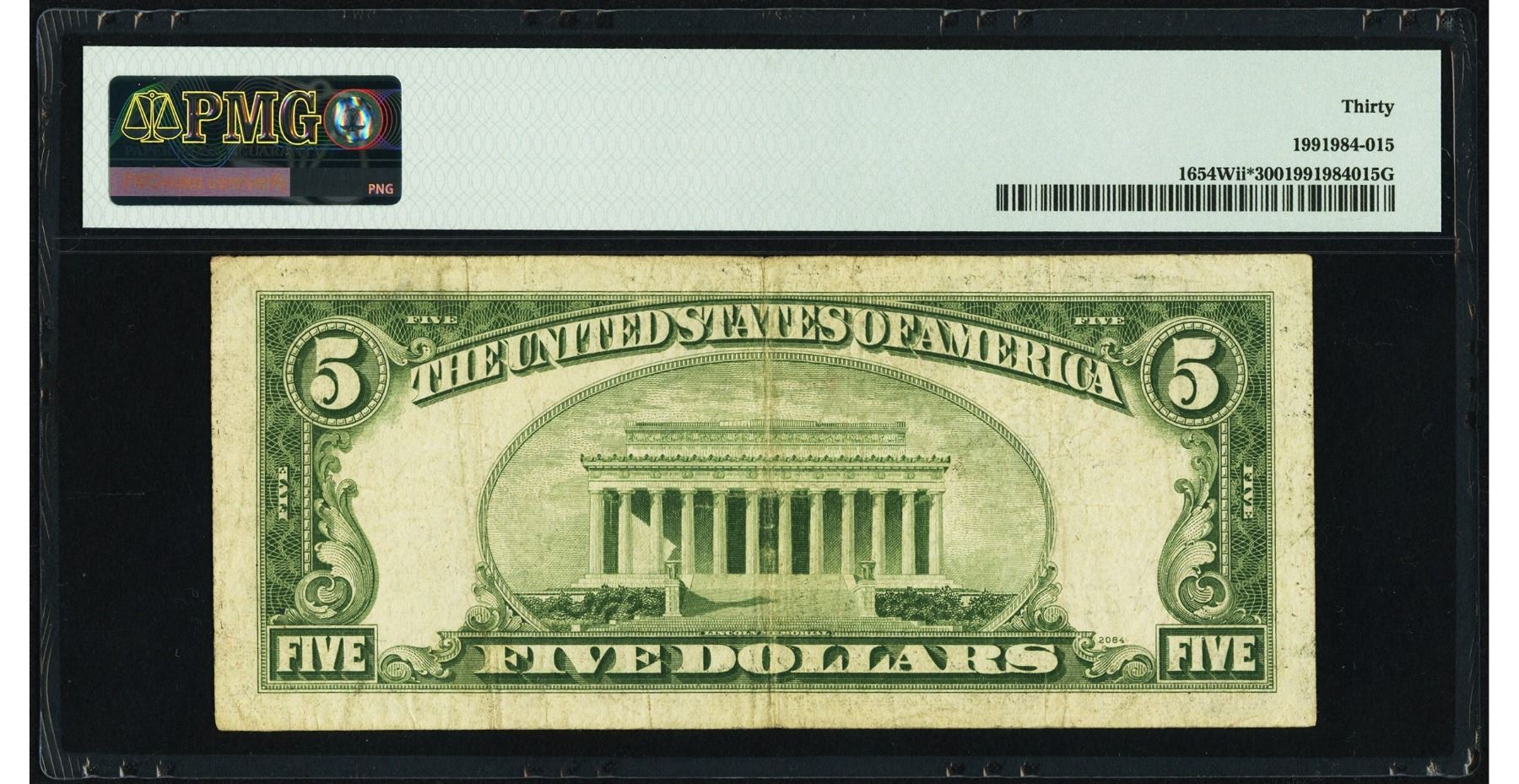 One 1934D $5 STAR Wide II Silver Certificate PMG 30.