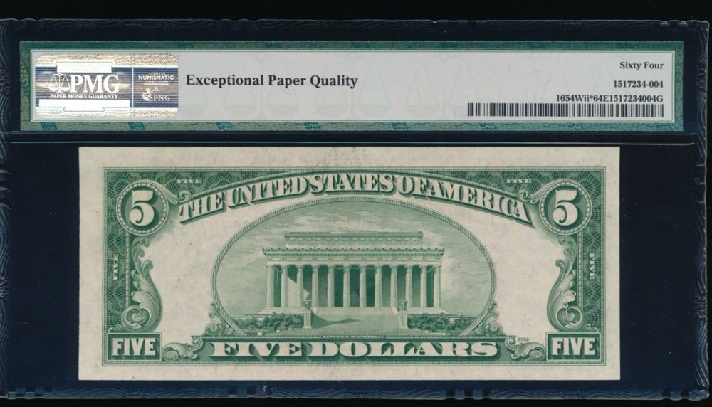 One 1934D $5 Silver Certificate Star Note PMG 64EPQ.