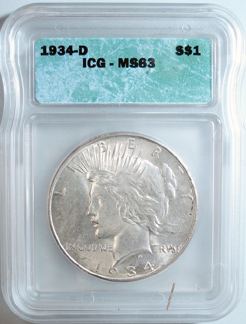 1934D Peace $ ICG63 graded correctly
