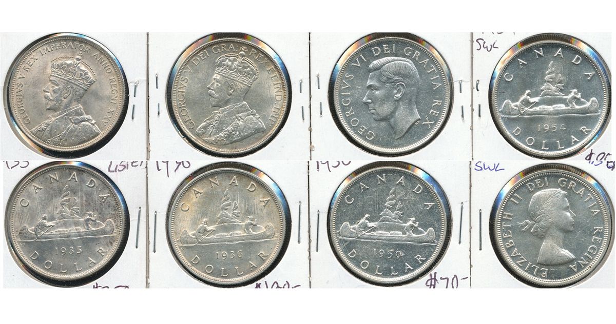 1935 $1, 1936, 1950 & 1954. Lot of 4 lustrous AU to UNC issues.