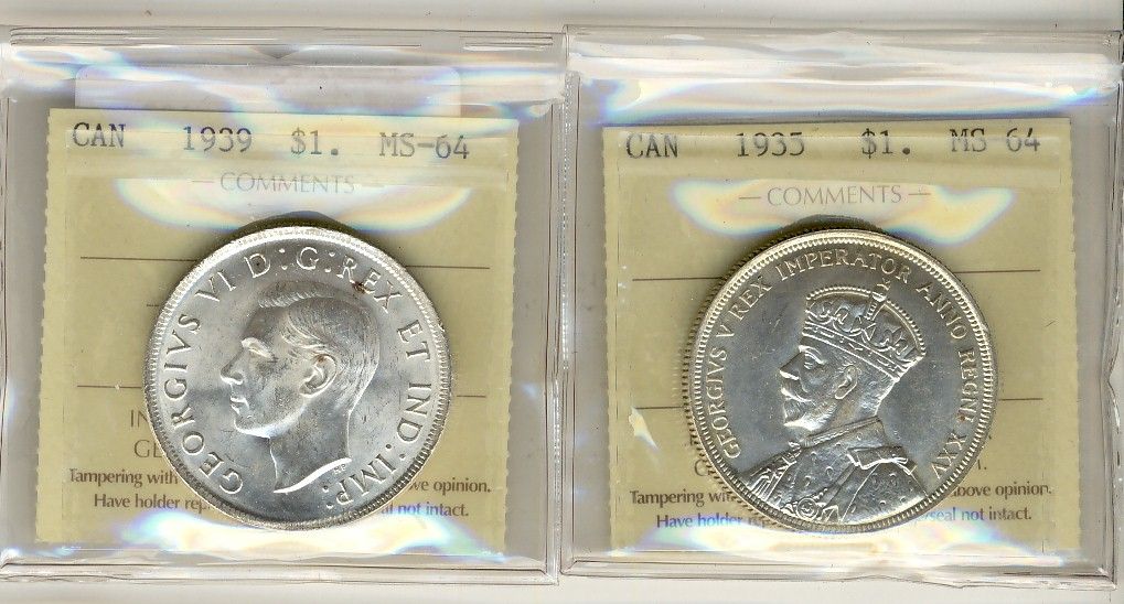 1935 $1 & 1939 ICCS MS64. Lot of 2 coins.