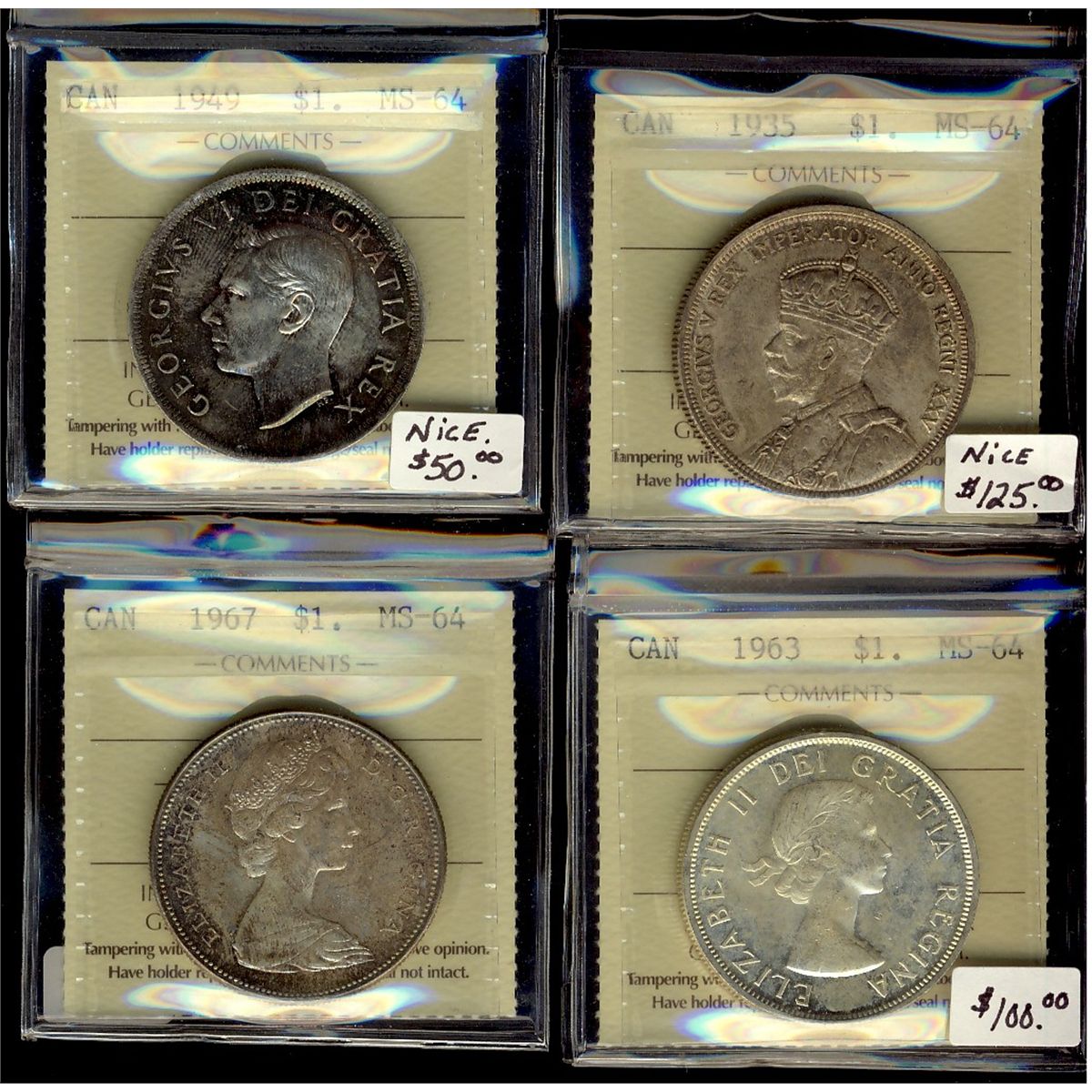 1935 $1, 1949, 1963 & 1967 ICCS MS64. Lot of 4 coins.