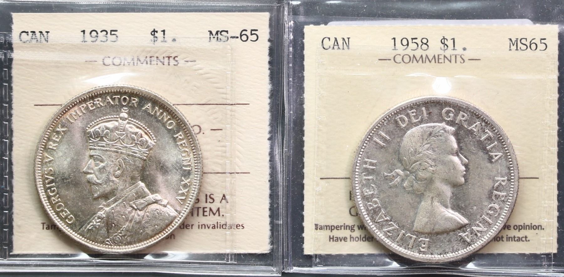 1935 $1, 1958 both ICCS Gem Mint State-65.