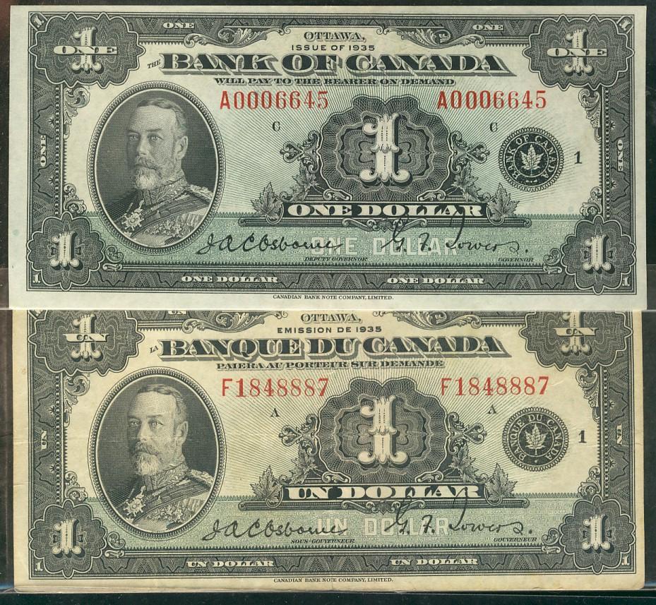 1935 $1 BC-1 #A0006645 EF & BC-2 #F1848887 VF. Lot of 2 notes.