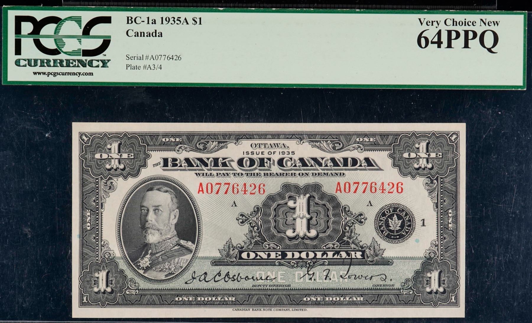 1935 $1 BC-1 #A0776426 PCGS Choice Uncirculated-64PPQ. This is a choice issue with great eye appeal, good margins and superb embossing.