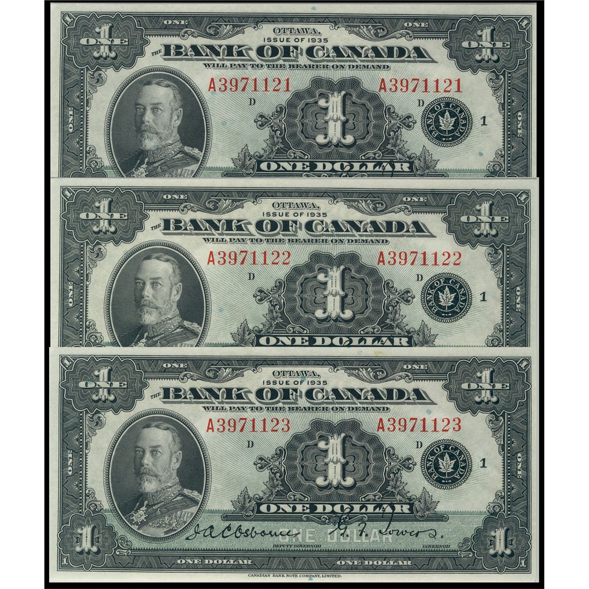 1935 $1 BC-1 #A3971121-22-23 PMG UNC64EPQ, Lot of 3 consecutives serial numbers.