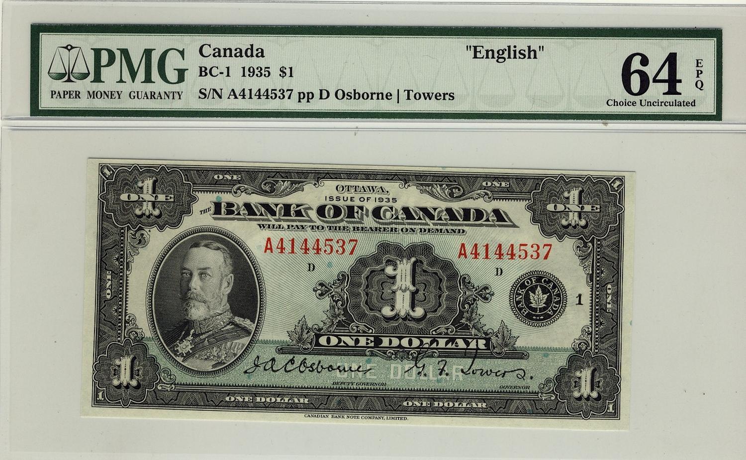 1935 $1 BC-1 #A4144537, PMG CH UNC64EPQ.