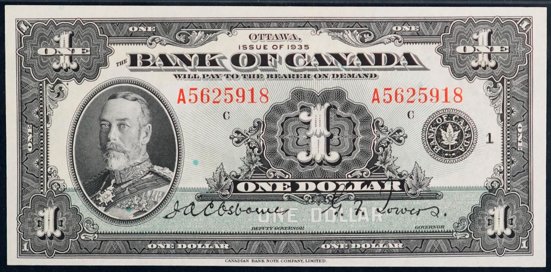 1935 $1 BC-1 #A5625918 PMG Choice Uncirculated-64 EPQ. This is a bright, clean and attractive issue with nice eye appeal.