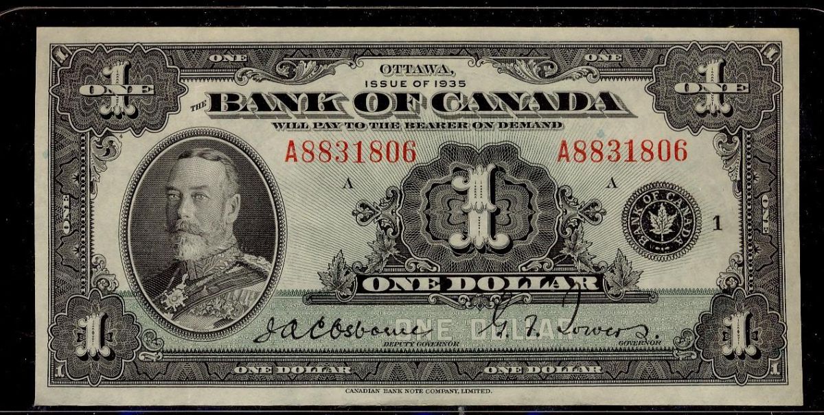 1935 $1 BC-1 #A8831806 Attractive and colourful note. Original EF+.