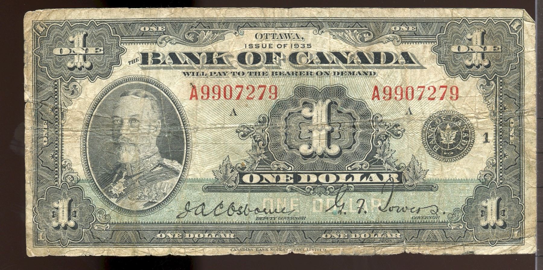 1935 1$ BC-1 #A9907279, VG/F for grade.