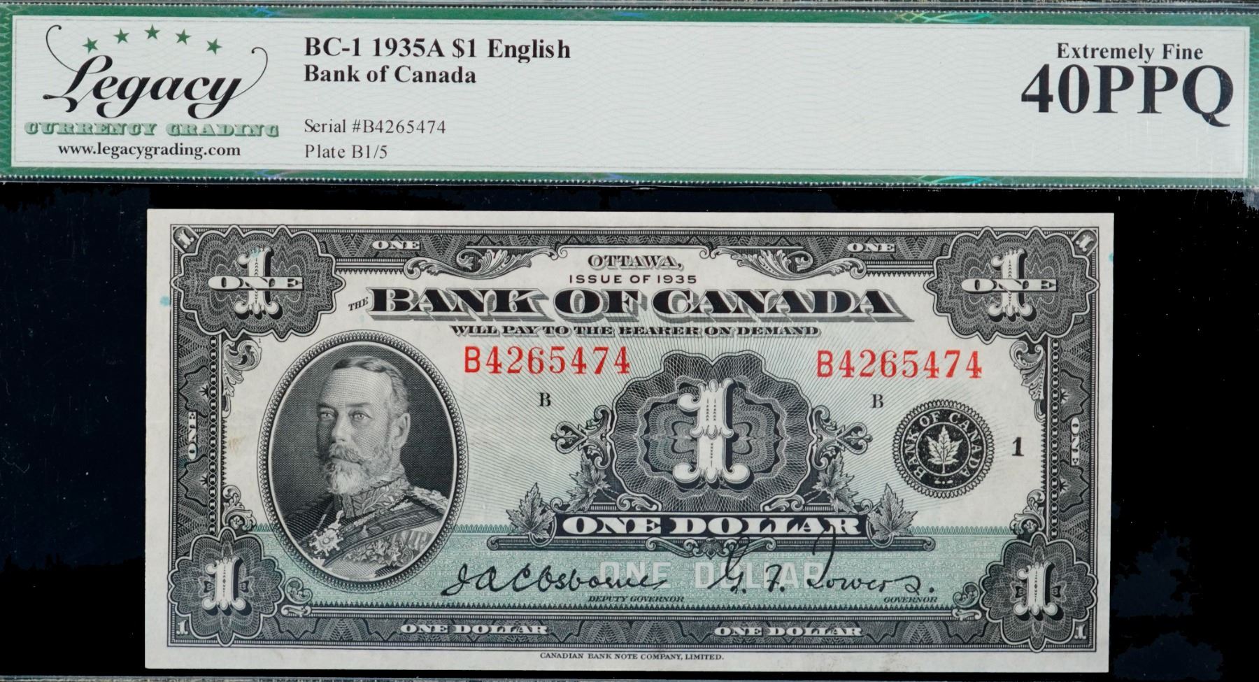 1935 $1 BC-1 #B4265474 Legacy Currency Grading Extra Fine-40PPQ. A bright example.