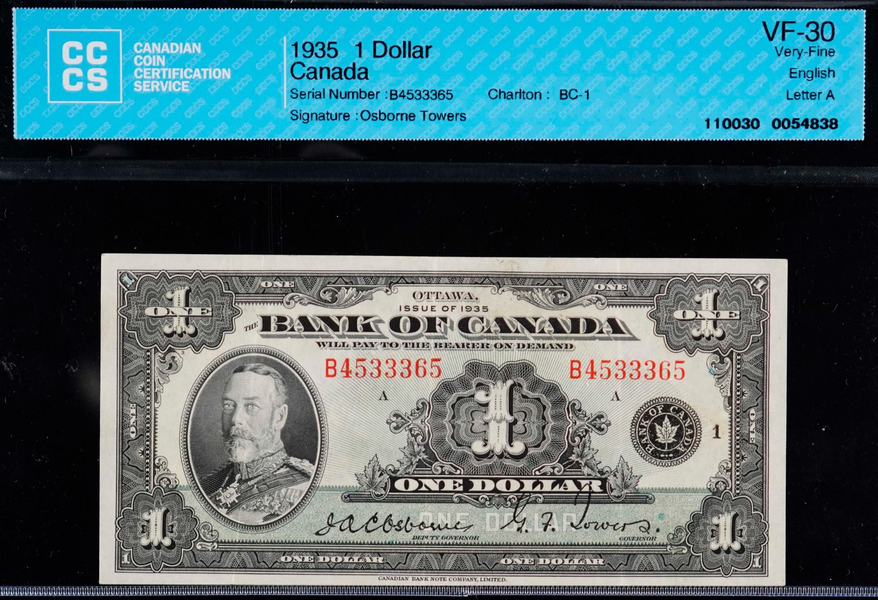 1935 $1 BC-1 #B4533365 CCCS VF30