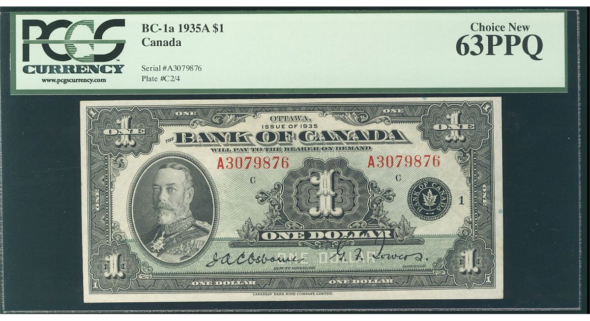 1935 $1 BC-1a #A3079876 PCGS CH UNC63PPQ. Choice and attractive.