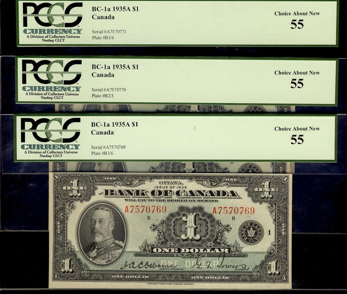 1935 $1 BC-1a #A7570769-771 PCGS AU55. Lot of 3 consecutive notes.
