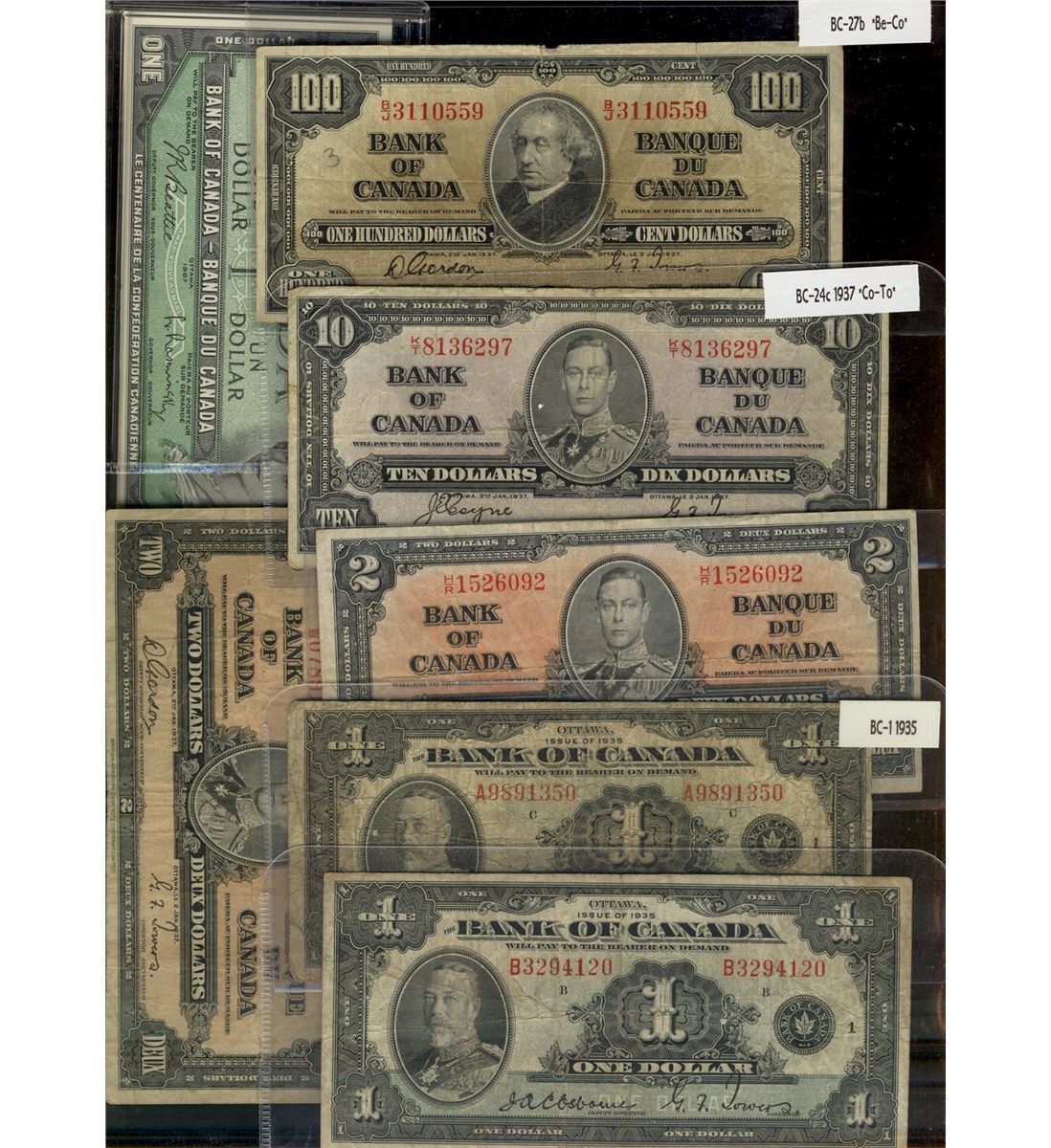 1935 $1 BC-1a, BC-1b, 1937 $2(2), $10, $100, 1954 $1(2), 1967 $1 & 1973 $1(22). A mix lot of diverse dates Good to UNC.