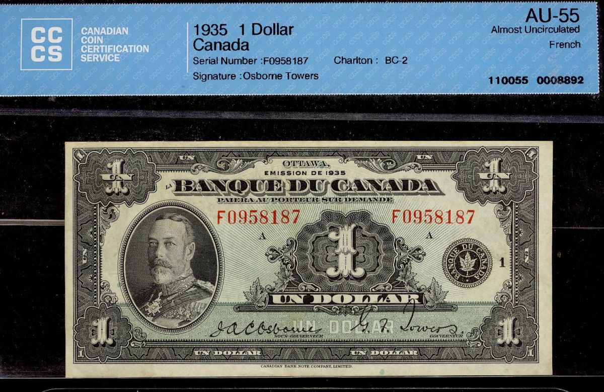 1935 $1 BC-2, #F0958187 CCCS AU55.