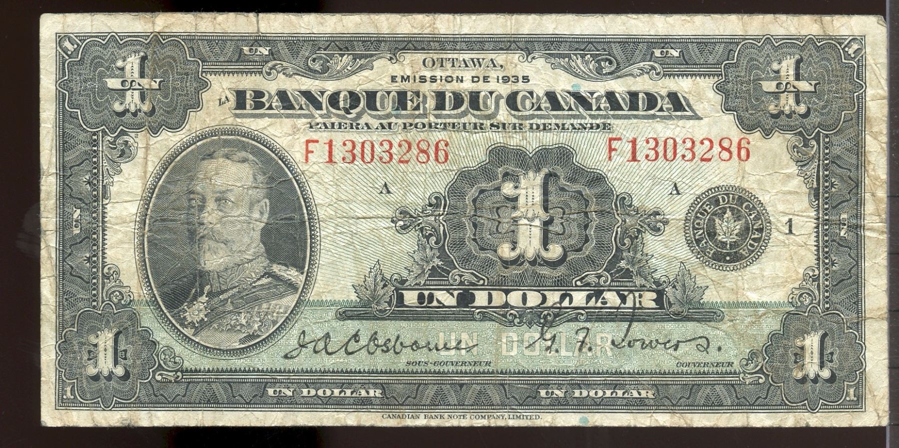 1935 1$ BC-2 #F1303286, VG/F for grade.