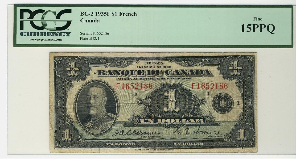 1935 $1 BC-2 #F1652186 PCGS F15PPQ