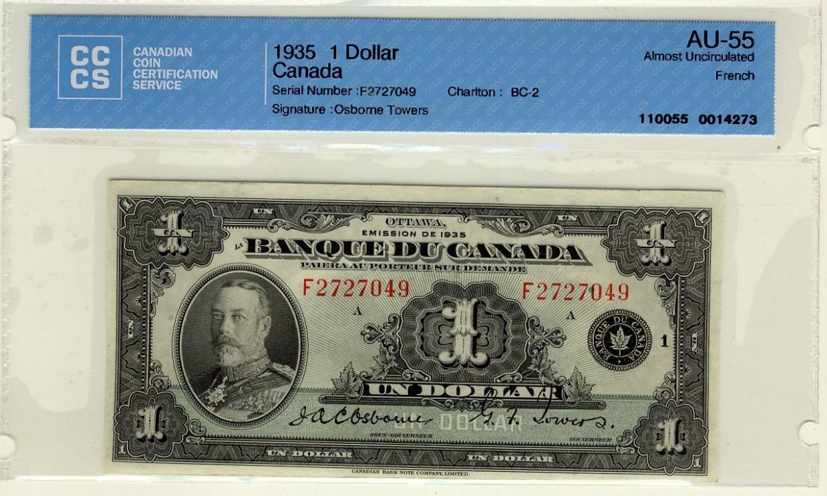 1935 $1 BC-2 #F2727049, CCCS AU55.