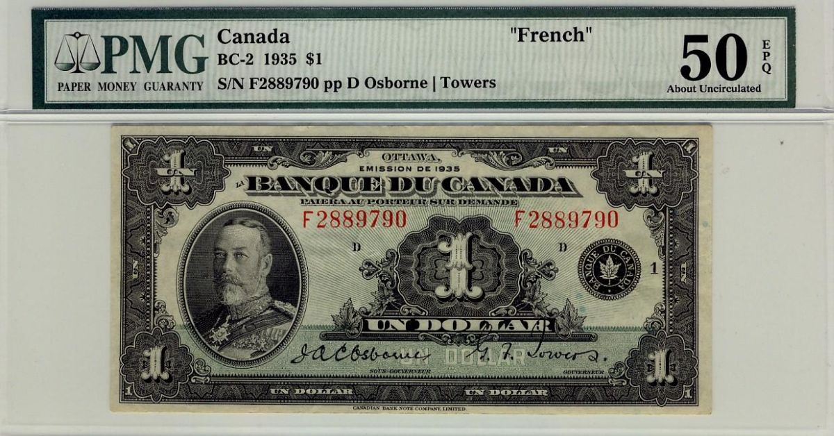 1935 $1 BC-2 #F2889790 PMG AU50 EPQ.