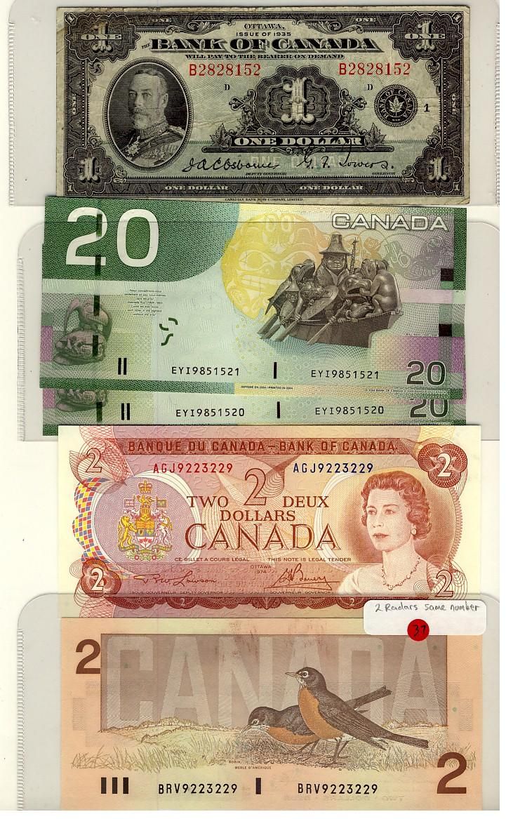 1935 $1 BC1b, 1974 $2, 1986 $2 RADAR & 2004 $20 BC-64aA-i(2). Lot includes 5 pcs all UNC except 193
