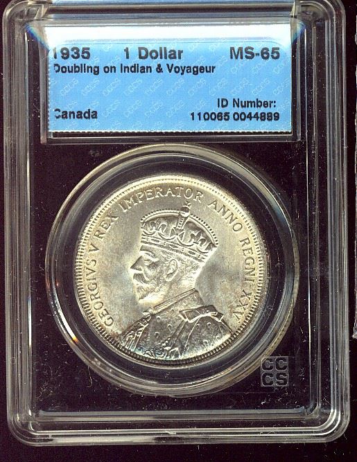 1935 $1 CCCS MS65. Designated with Doubling on Indian & voyageur.
