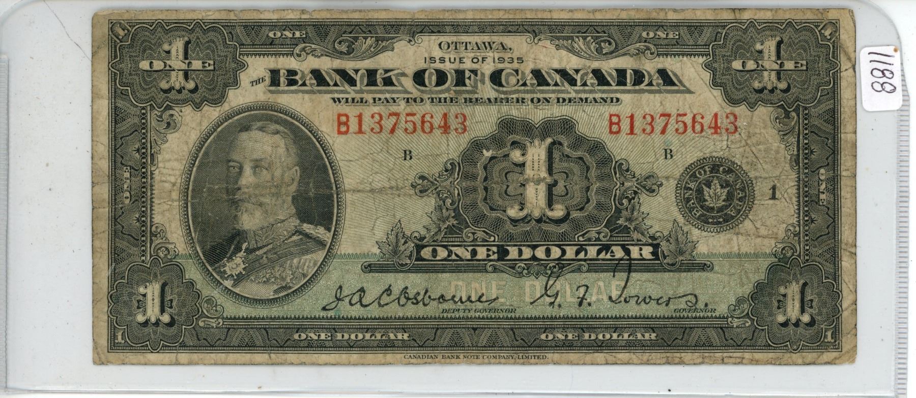 1935 $1 Canadian Bill