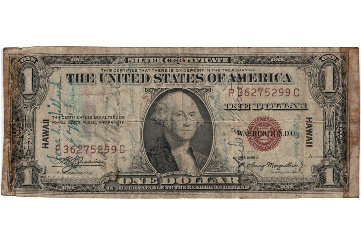 1935 $1 Hawaii Federal Reserve Note Currency.
