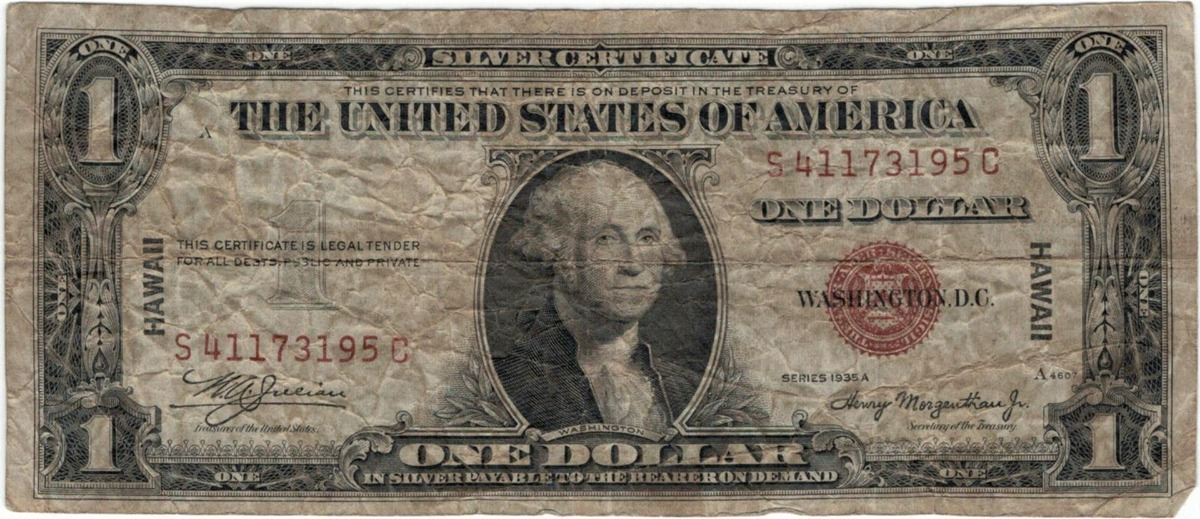 1935 $1 Hawaii Federal Reserve Note Currency.