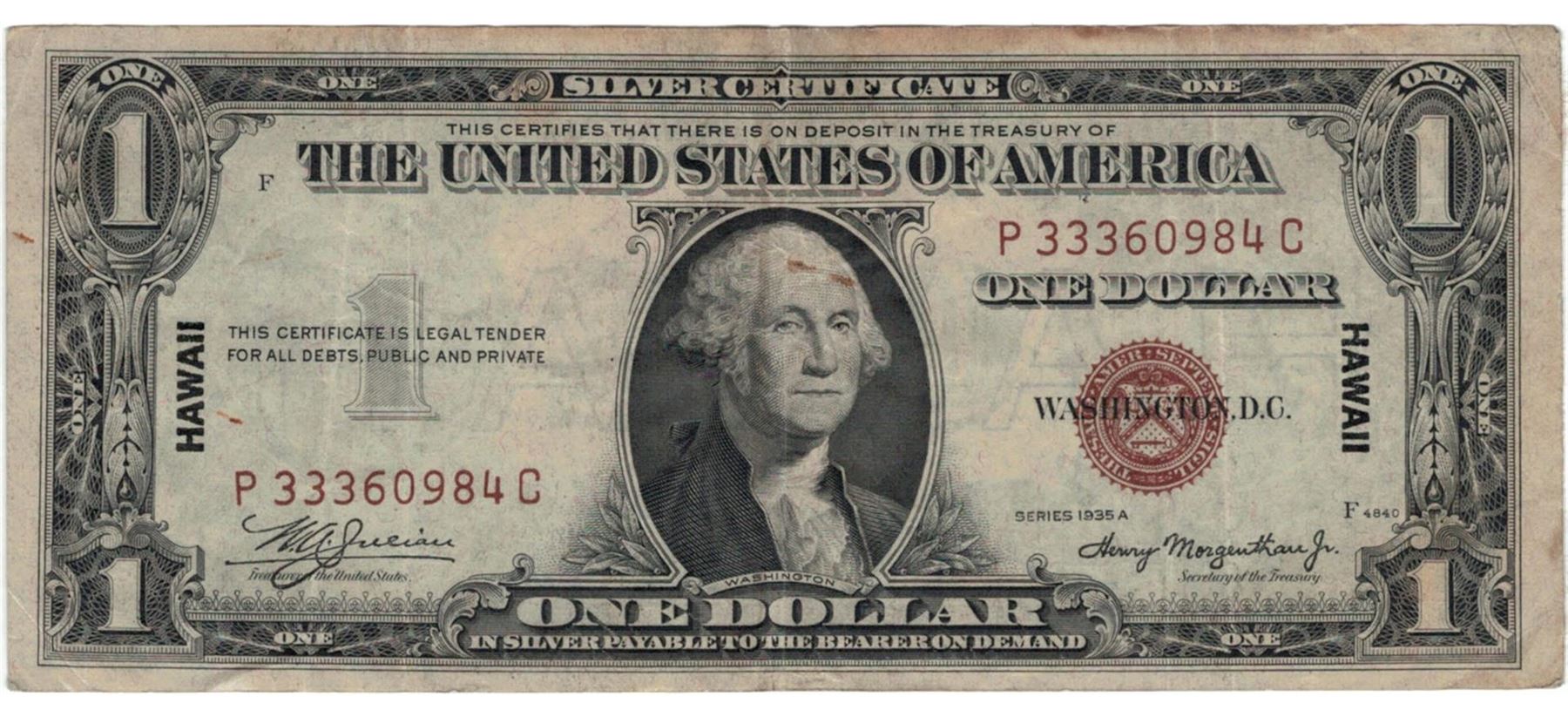 1935 $1 Hawaii Federal Reserve Note Currency.